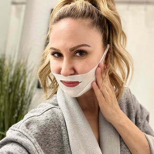 Place le masque sur ton menton, ajuste les sangles derrière les oreilles et laisse agir 10 à 15 minutes. Répète 1 à 7x par semaine pendant 3 semaines pour de meilleurs résultats.